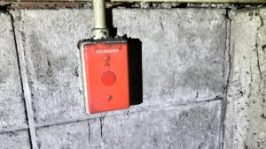 福岡市東区の工場にて、夜間から早朝にかけて火災報知機が連続して誤作動。 緊急調査に駆けつけました。 到着した時には、警報は止まり平穏そのもの。 「症状が消えてから、医者に原因を問う」ようなもので、この状況下での原因特定は非常に難易度が高い。 しかし、再発は何としても防がなければなりません。 設備を徹底的に調査する中で見つけたのは、感知器末端にある試験機の「腐食」でした。 「雨による湿気で、この端子間の抵抗が下がって誤作動したのではないか?」 そう仮説を立て、該当機器を一旦取り外して次の雨まで誤作動の再発を観察することにしました。 予想し、検証し、確実な解決へ導く。 これもまた、消防設備屋の大切な仕事です。